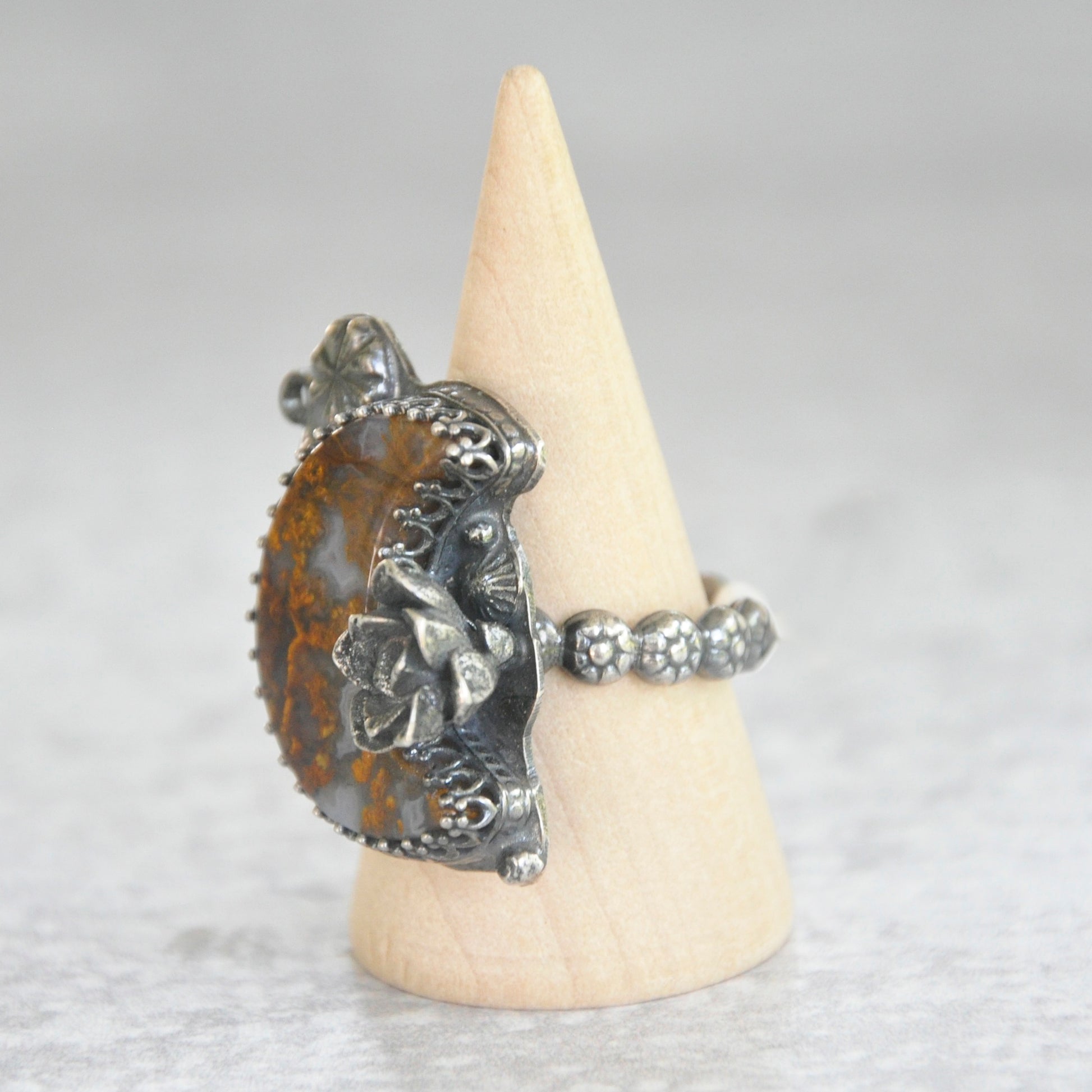 Ochre Moon + Succulent Statement Ring • Size 7.5 US