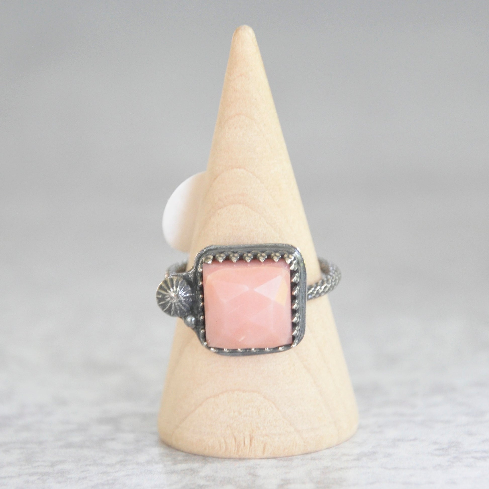 Pink Opal Faceted Square Ring No. 1 • Size 7 US