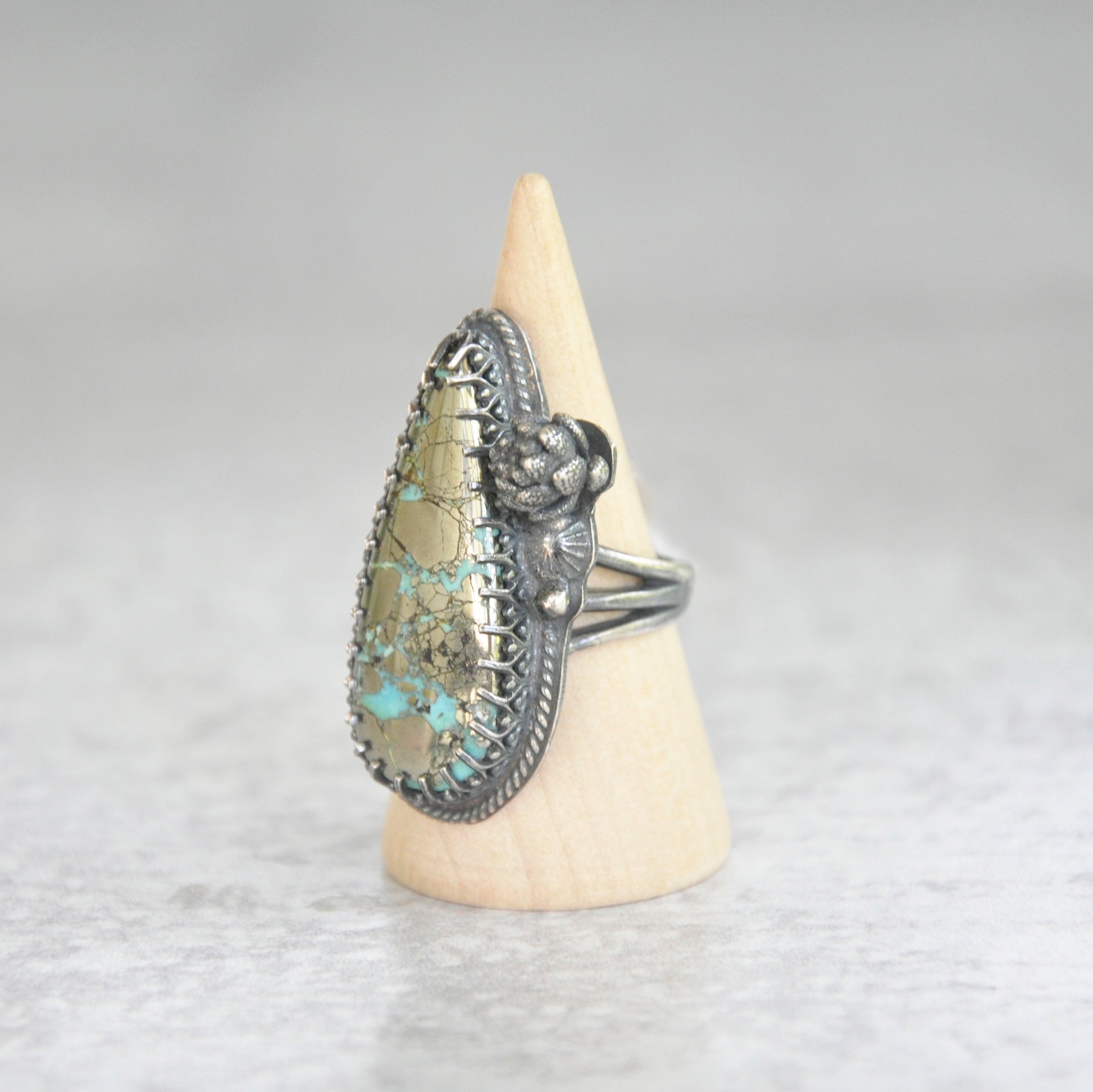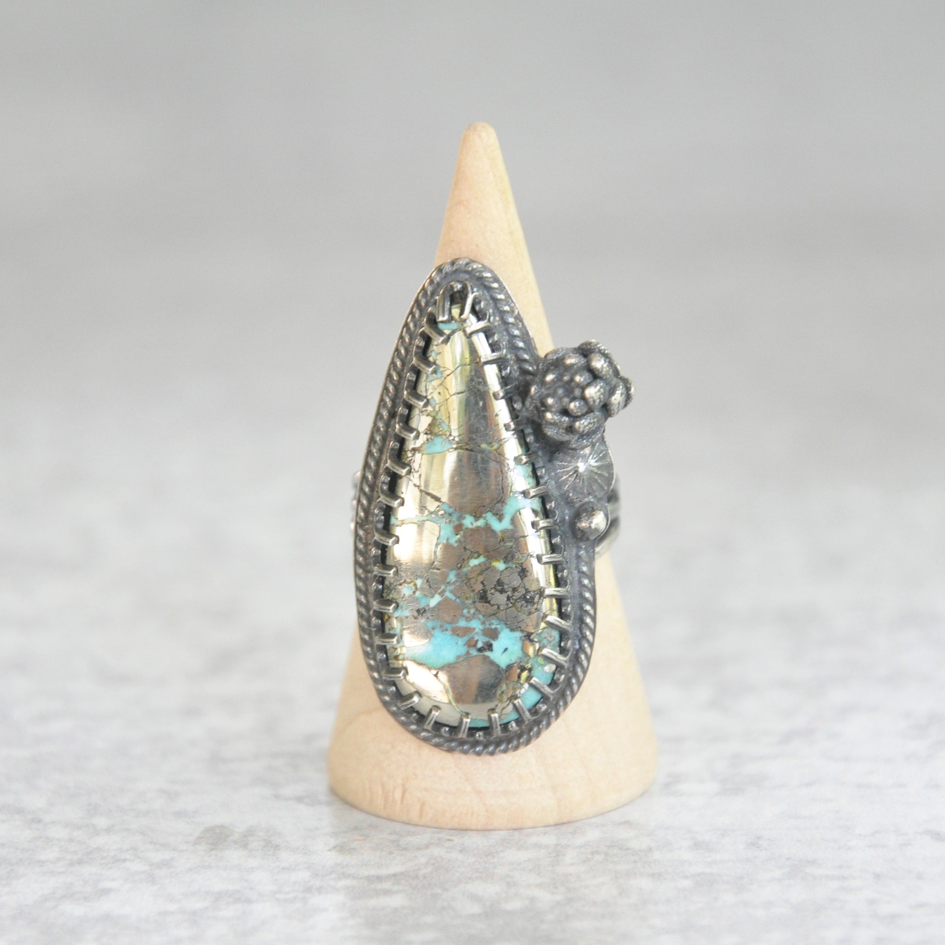 Pyrite + Turquoise Ring with Succulent • Size 6.25 US
