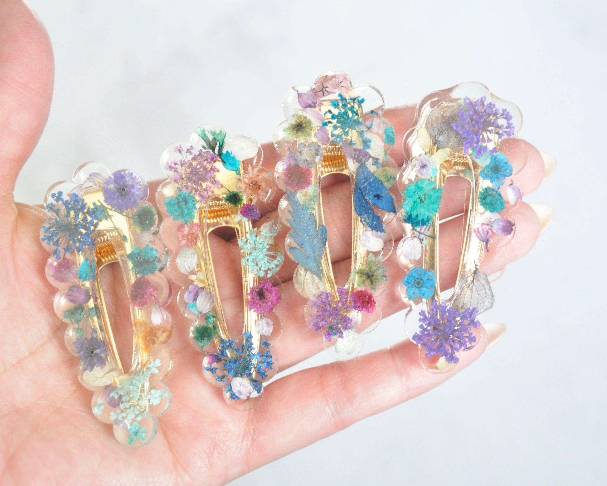 Each floral resin hair clip is lovingly handmade for all ages, adding a pop of personality to your daily hairstyle or making a heartfelt gift for someone special.