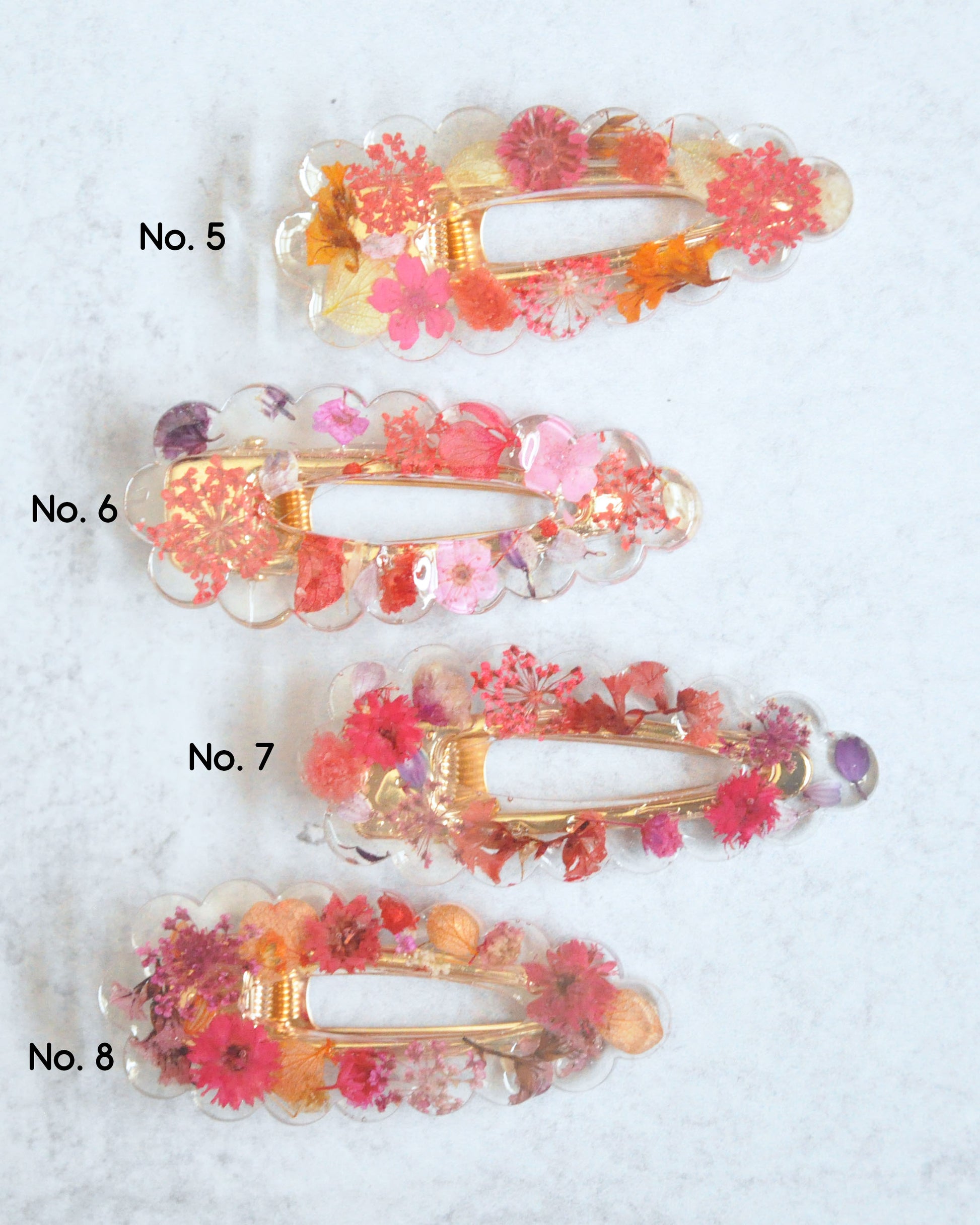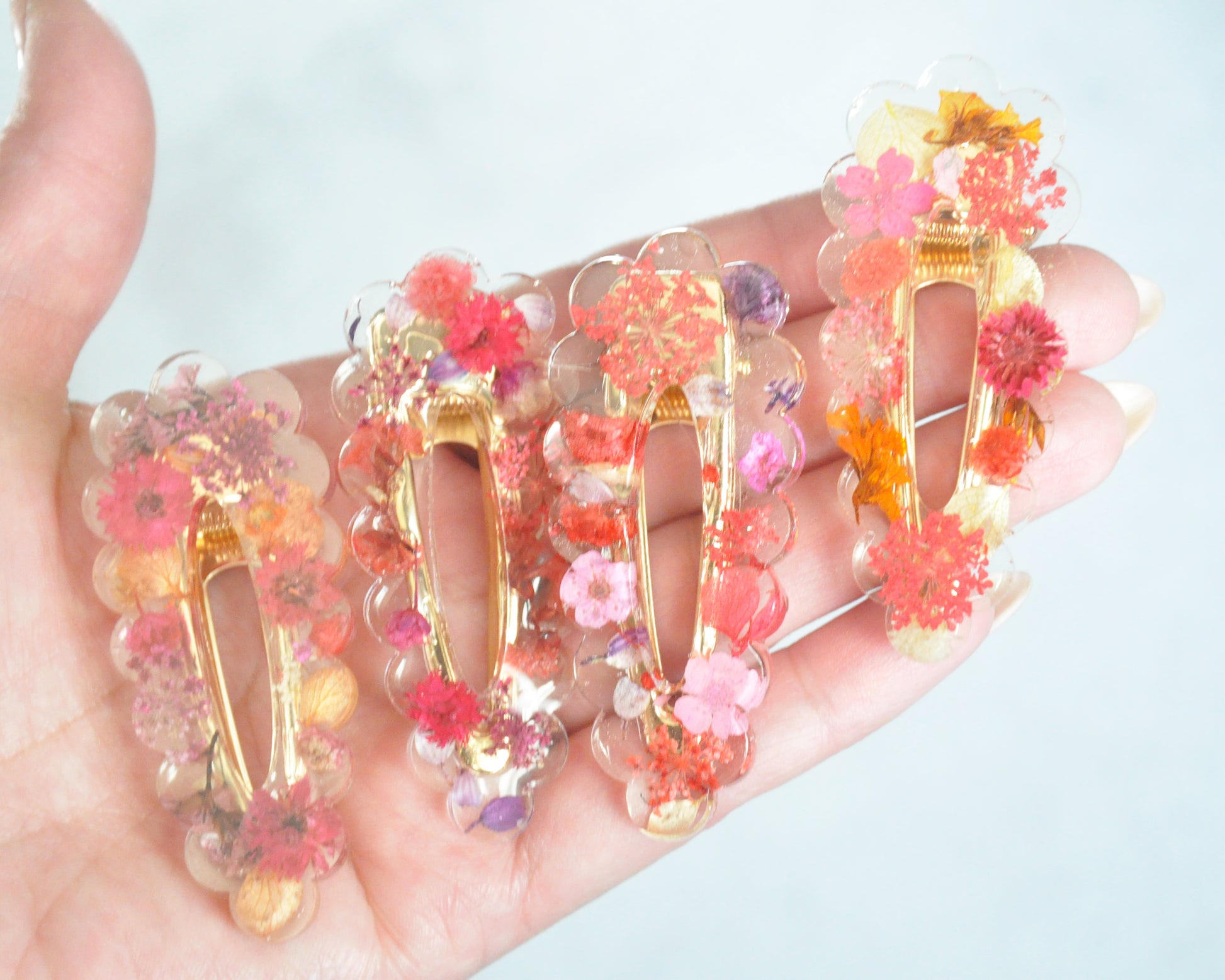 Each floral resin hair clip is lovingly handmade for all ages, adding a pop of personality to your daily hairstyle or making a heartfelt gift for someone special.