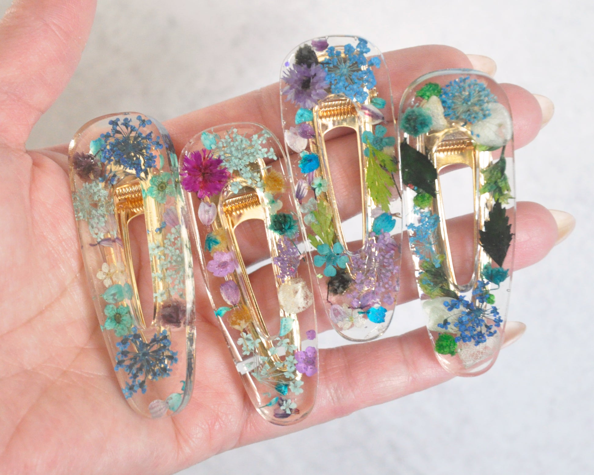 Each floral resin hair clip is lovingly handmade for all ages, adding a pop of personality to your daily hairstyle or making a heartfelt gift for someone special.