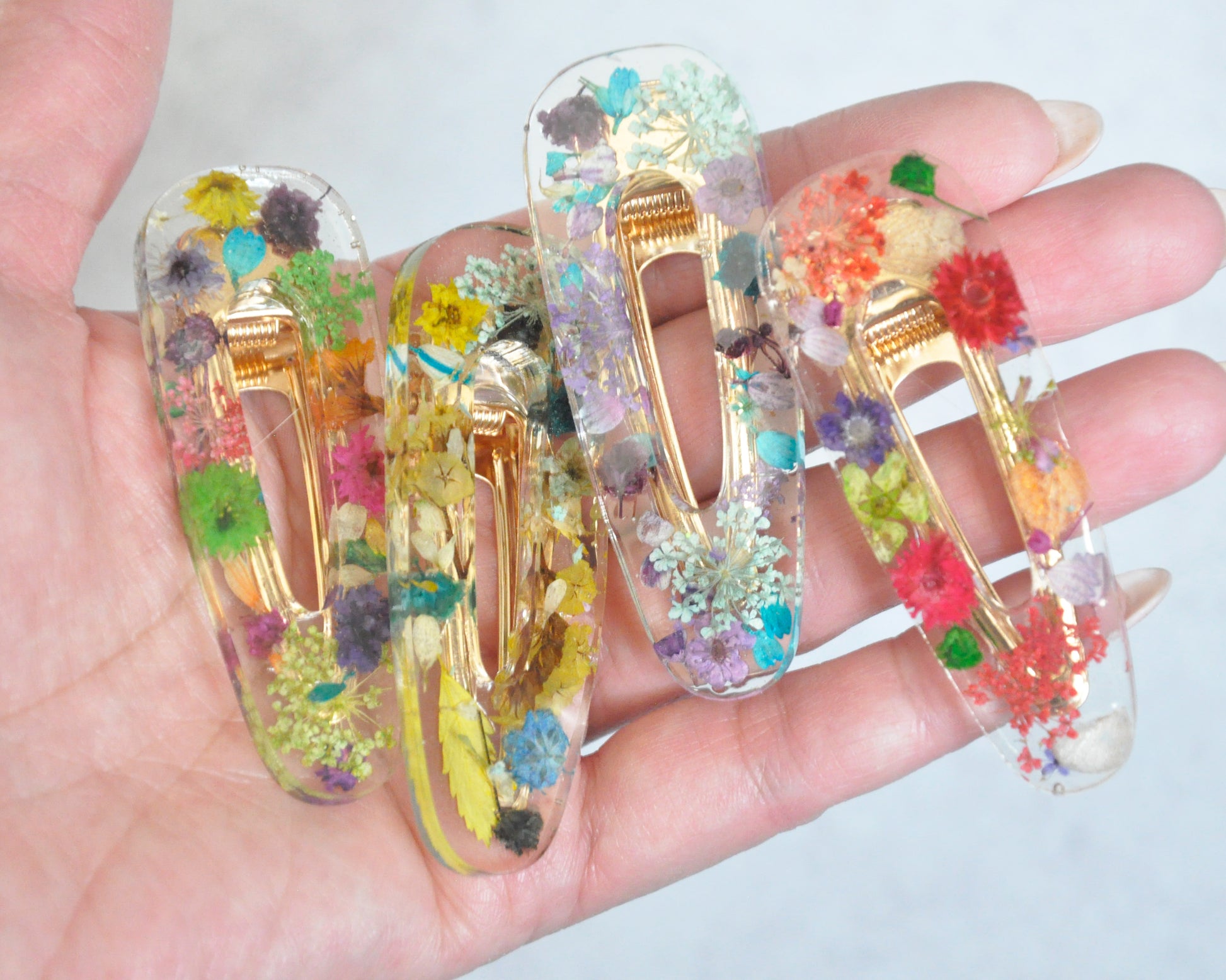 Each floral resin hair clip is lovingly handmade for all ages, adding a pop of personality to your daily hairstyle or making a heartfelt gift for someone special.