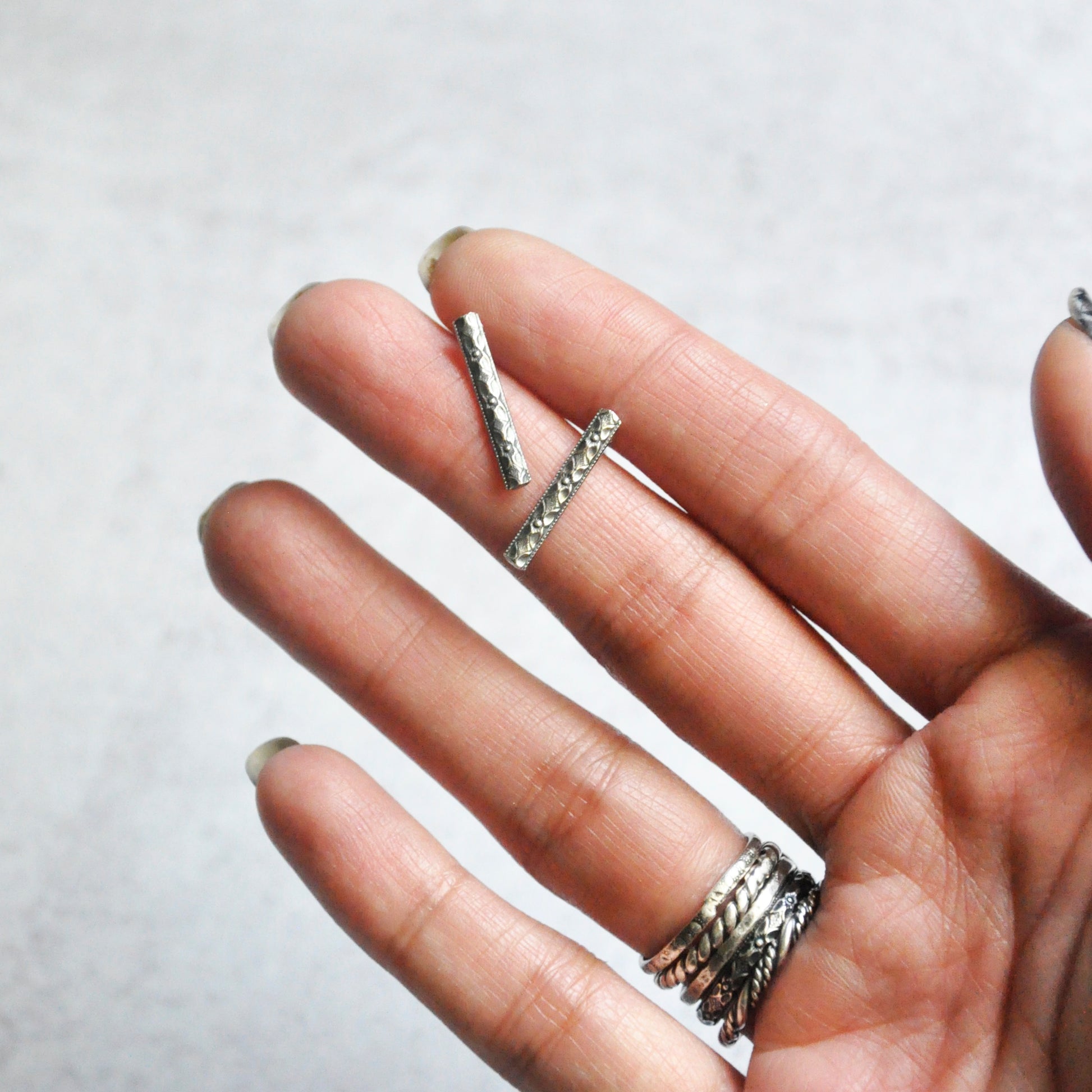 Textured Bar Earrings that you can wear as an ear climber or a simple pair of studs.