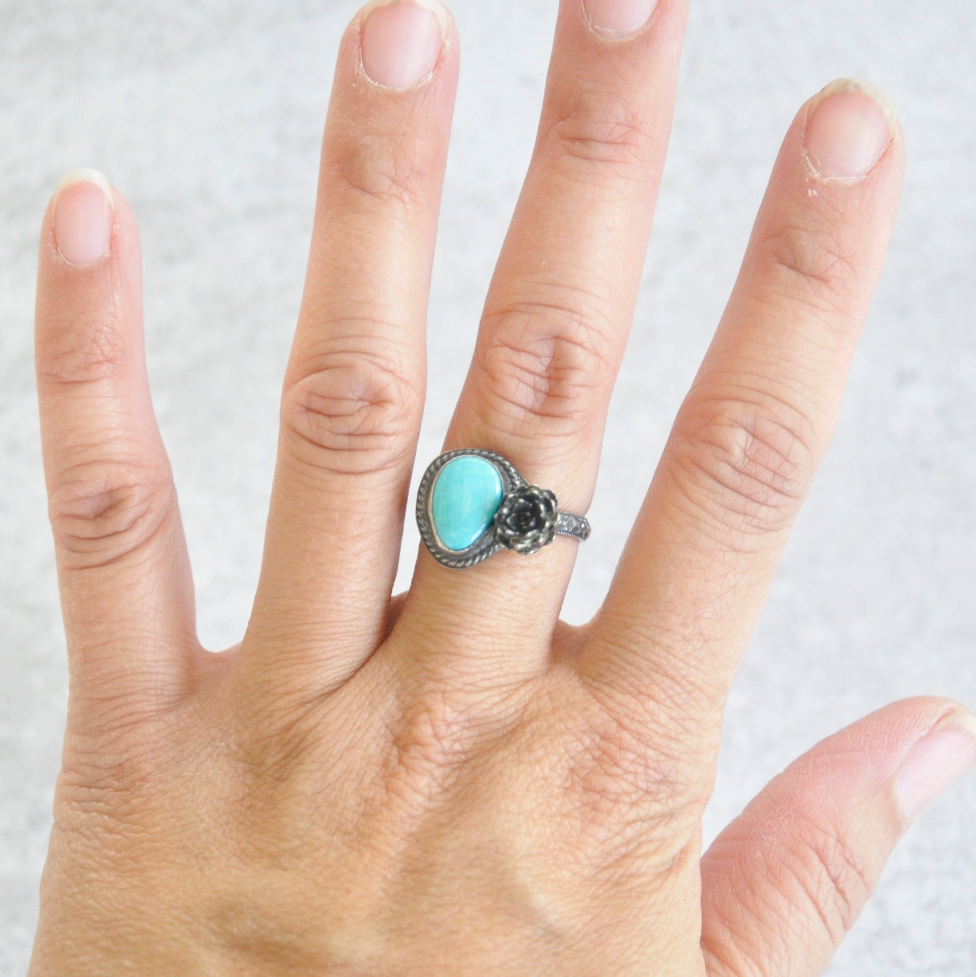 Turquoise + Succulent Bloom Ring No. 3 • Size 7.5 US